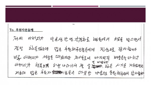 따뜻한 마음으로 응원해줘 감사합니다. 허 씨 치료비 지원